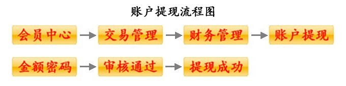 (1)賬戶提現(xiàn)首先需要設置“提現(xiàn)銀行”和“交易密碼”,設置完成后按以下流程圖進行提現(xiàn)。